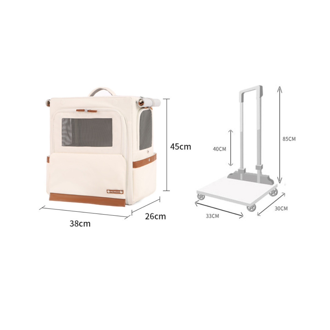 Extra-large, breathable pet travel bag designed for cats and small dogs. With its portable trolley wheels, convertible backpack straps, and spacious interior, it’s perfect for car rides, flights, or daily outings. Built for comfort, mobility, and convenience.